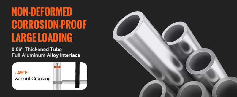 - Superior Load Capacity: VEVOR telescopic ladder is made of thickened aerospace-grade aluminum alloy, with a maximum load capacity of up to 400lbs. The interface components are also designed with aluminum alloy to withstand freezing weather. The product has been certified by ANSI and EN131 systems, ensuring your peace of mind during use.
